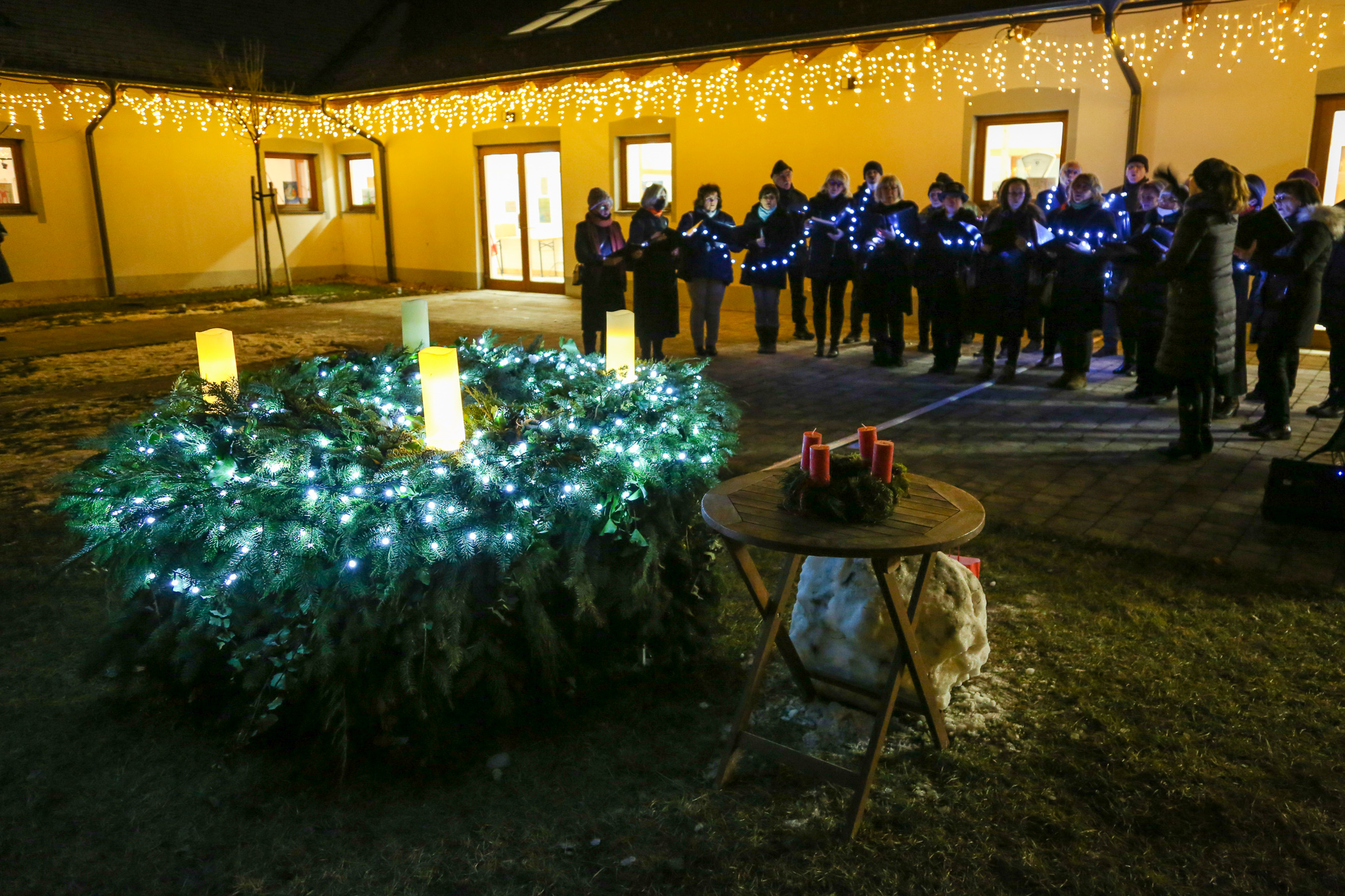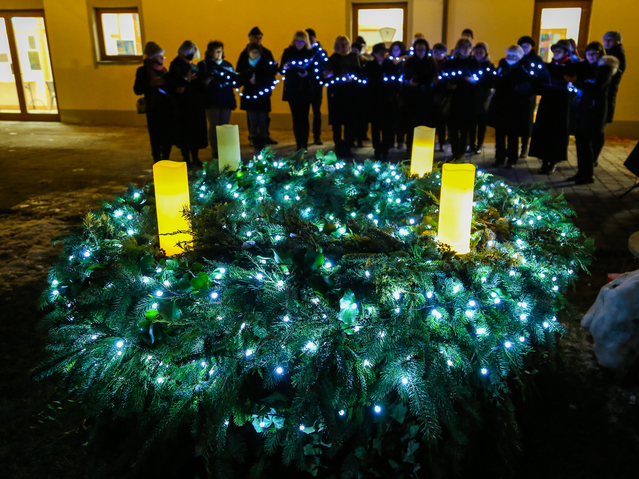 A gödi gyertyagyújtáson a Gaude kórus előadását hallgathatták az egybegyűltek, majd Tóthné Barcs Ágnes mondott ünnepi beszédet. A harmadik adventi gyertyát Gödön Chikán Katalin evangélikus lelkész lobbantotta lángra.