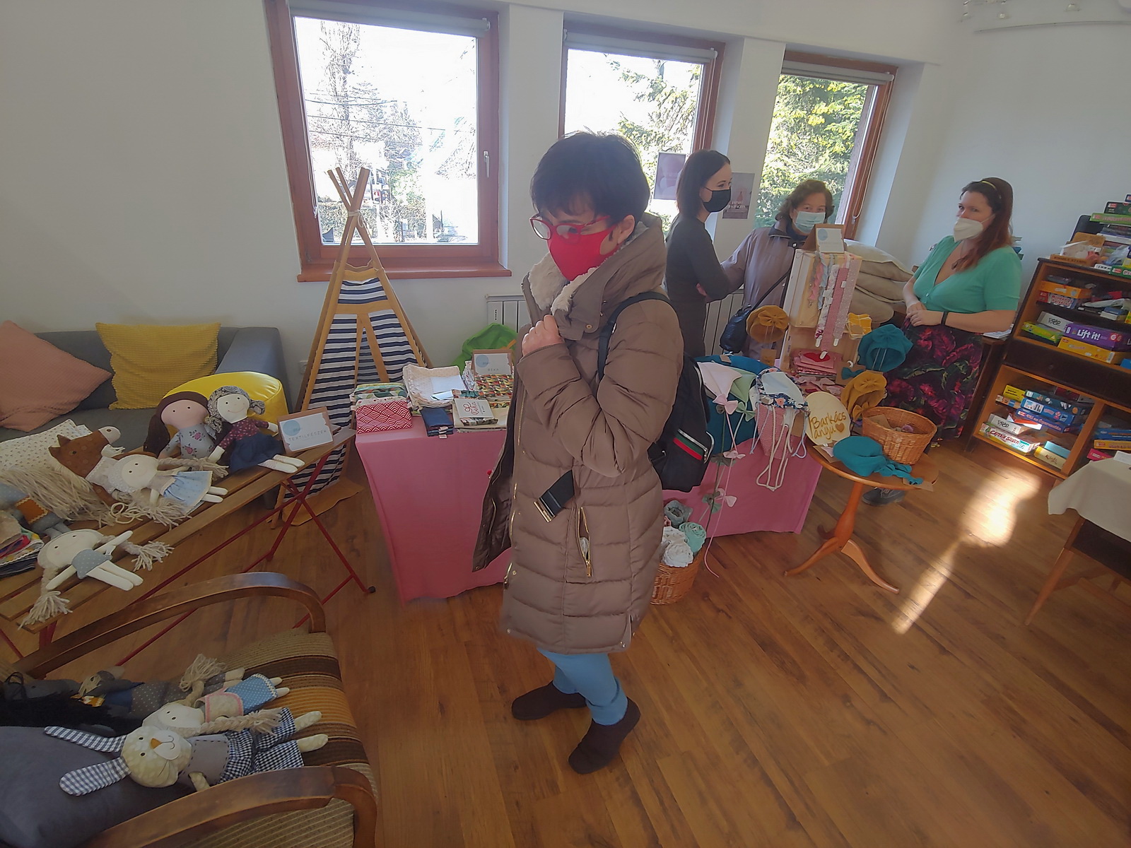 A Különc emeleti helyiségében (amit Kinga kibérelt az alkalomra) akár 8-9 készítő is kitelepülhet a minden hónap második szombatjára tervezett vásárra. Szép időben -és ha a járványhelyzet úgy alakul-, az udvart is használni fogják. A 22 kézműves között van, aki környezettudatos textíliákat, van, aki makramét és van például, aki üvegfestéseket készít. Nem csak a gyerekekre gondolnak, nőknek és családoknak is lesz kínálatuk. Az árusok mind fent vannak a Facebookon és általában vannak saját weboldalaik is.