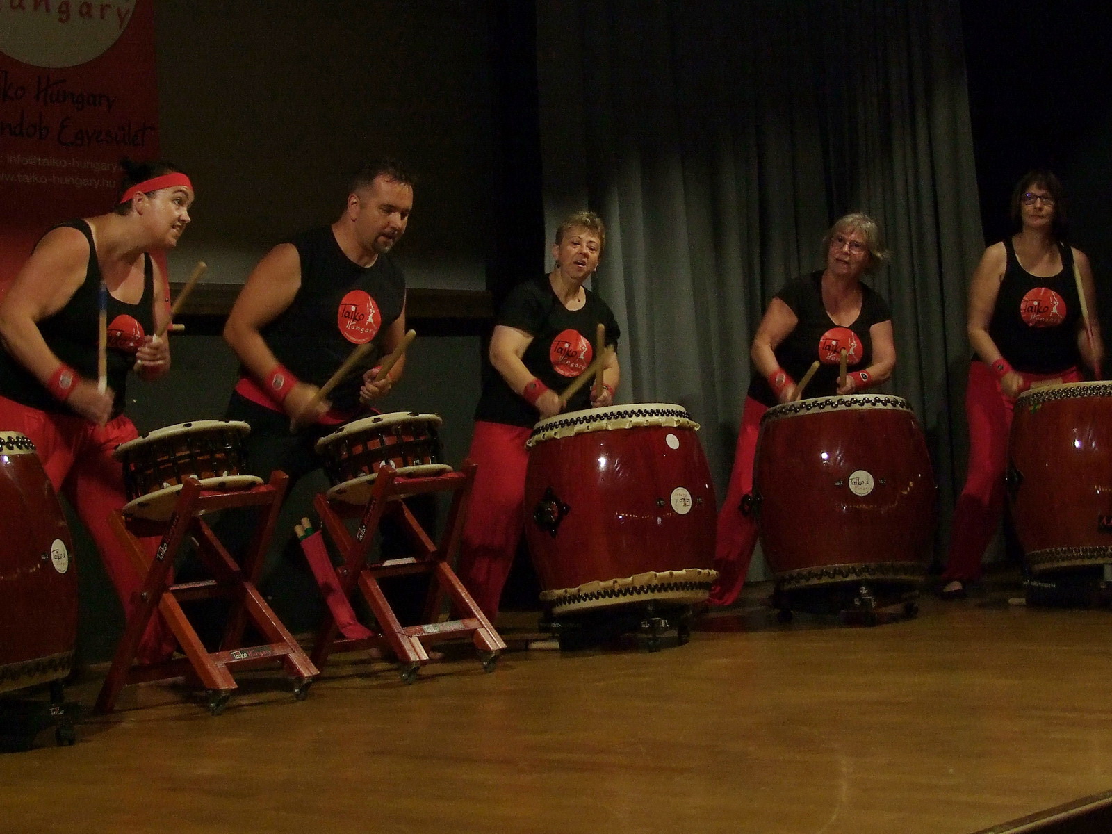 - Igen, tulajdonképpen ez egy aerobikedzés, már tízéves kortól el lehet kezdeni, míg a legidősebb tagunk 70 év körül van. Szépen, fokozatosan építjük fel hozzá a fizikumot – úgy kell elképzelni, mint egy aerobikórát. Eljön az ember az edzésre és másfél órát dobolunk. Egyre jobban bírja az ember szervezete, ez egy nagyon jó kardioedzés és meditatív relaxáló dolog, mert másfél órán keresztül lehet ütni dolgokat.