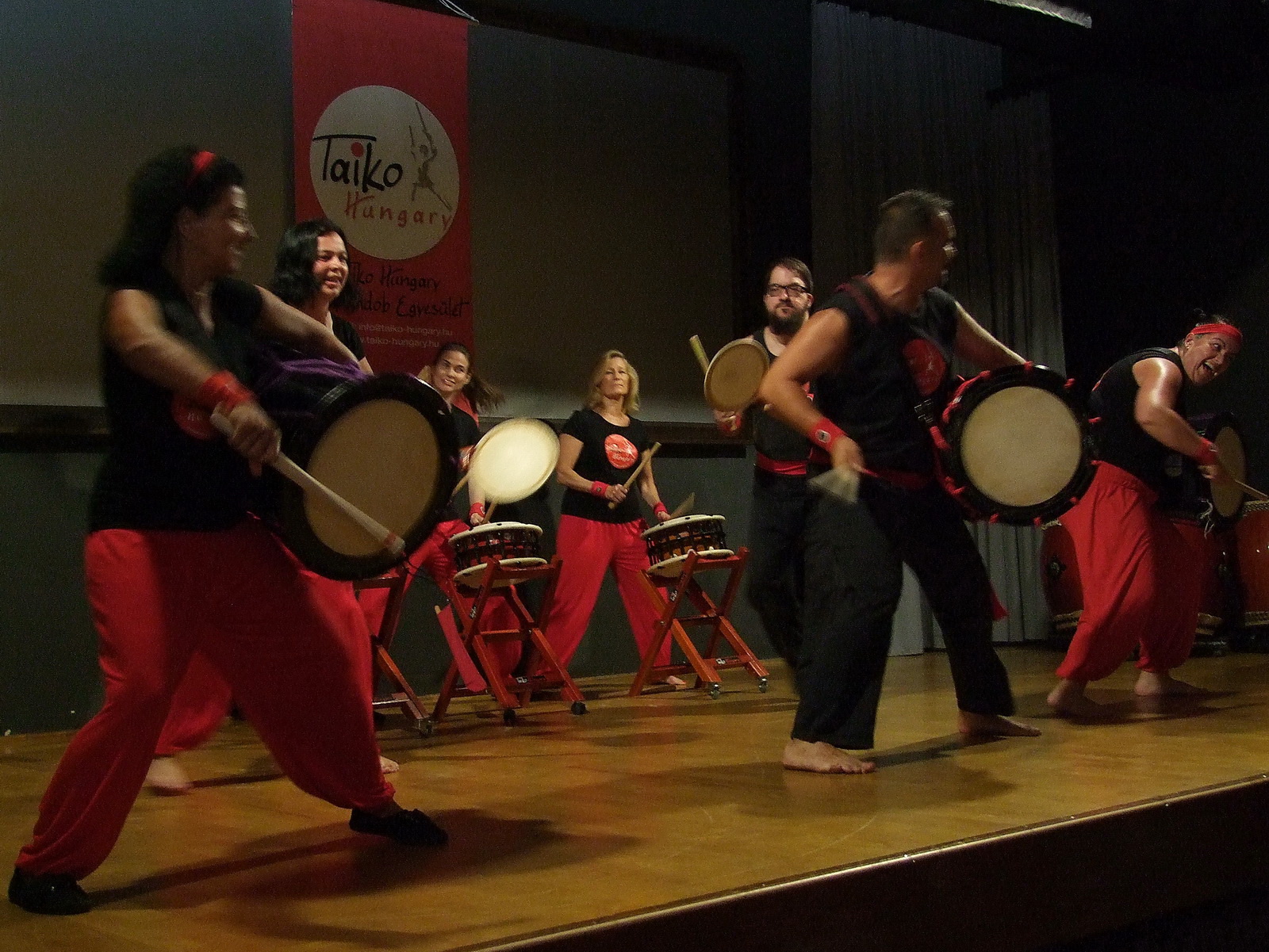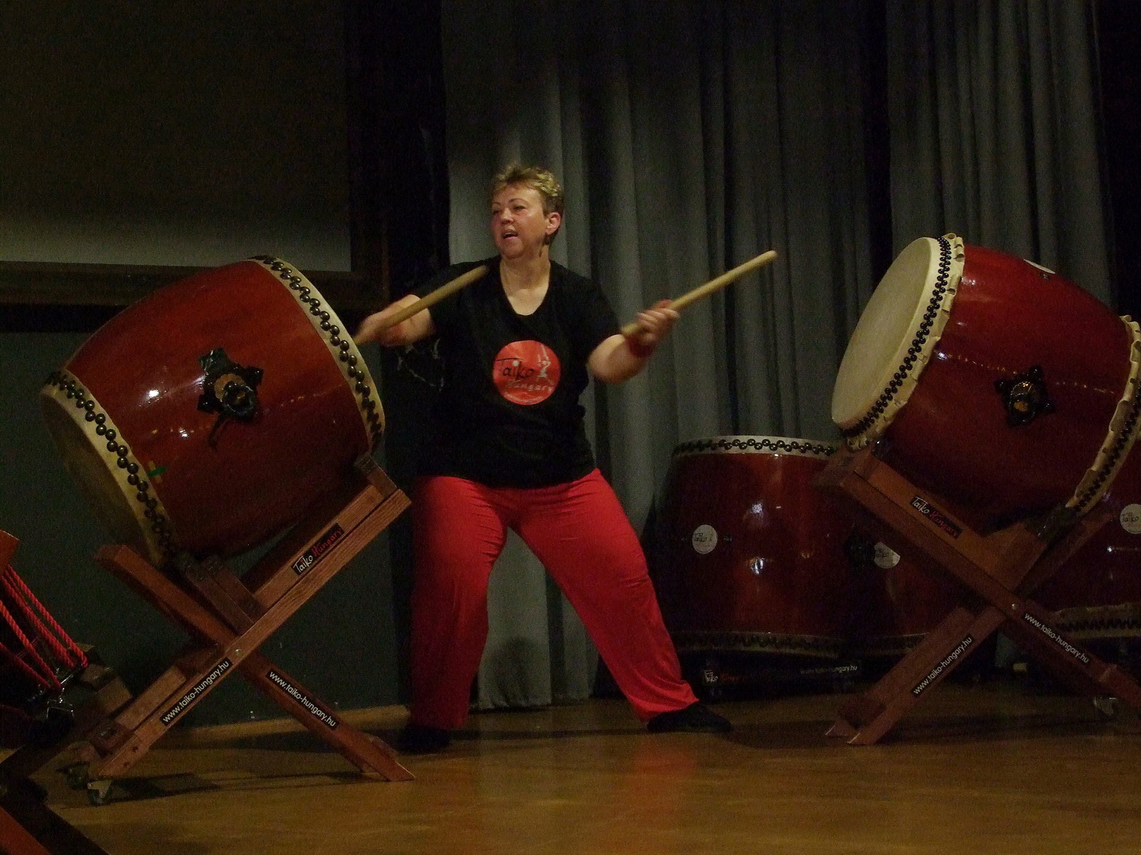 Az előadás után Dorkó Évával (Taiko Évi), az egyesület titkárával és egyik legaktívabb dobosával beszélgettünk.